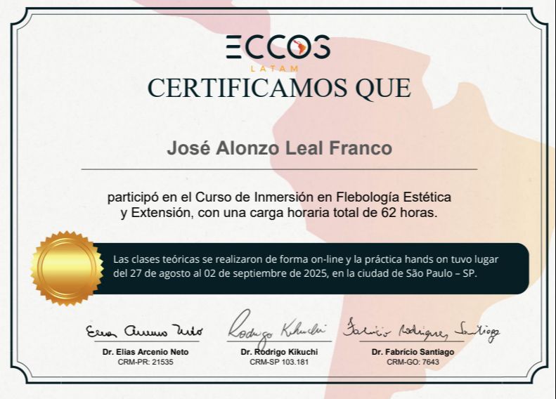 ¡Saludos! Hola, soy el Dr.Jose Alonzo Leal Franco, Angiólogo, Cirujano Vascular y Endovascular egresado de la Universidad de Monterrey y del Hospital de Cardiología, UMAE No. 34 en Monterrey, Nuevo León.